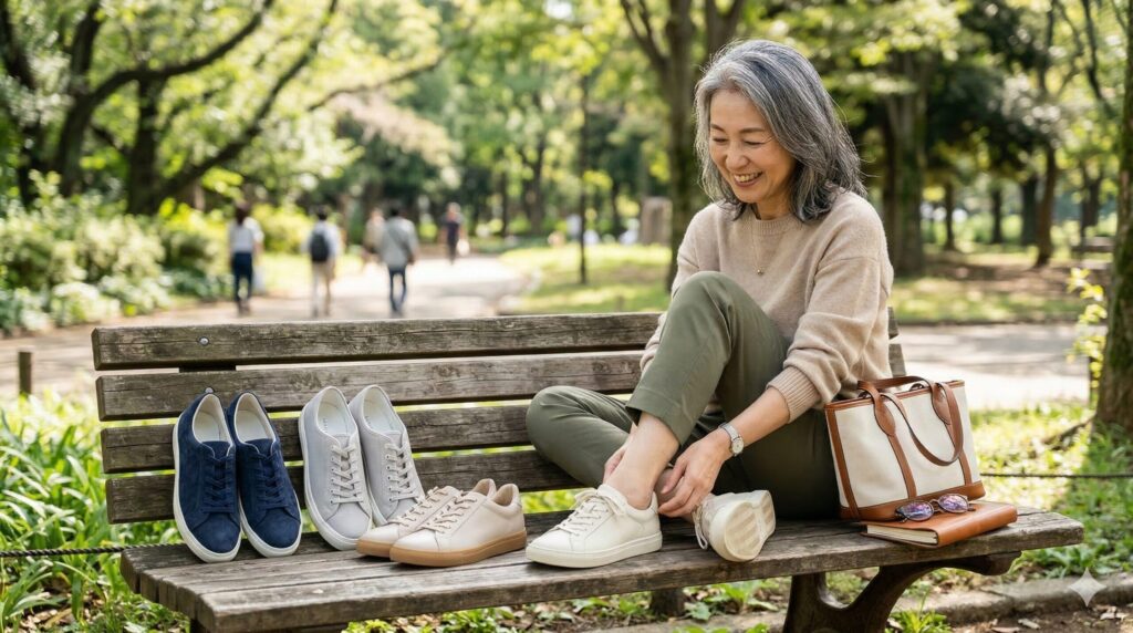 結論から申し上げますと、50代のレディーススニーカーは、上質な素材感とクッション性にこだわったものを選ぶことで、カジュアルさとおしゃれを完璧に両立できます。