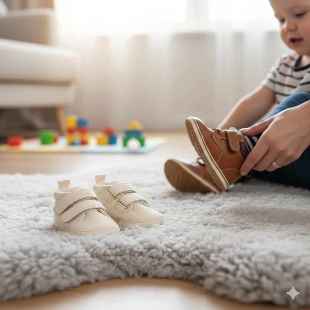 保育の現場でも、初めて靴を履く子がロボットのような歩き方になるのをよく見かけますが、これは足首のホールド感に戸惑っている証拠です。まずは家の中で靴を「おもちゃ」として触らせ、抵抗感をなくすことから始めましょう。