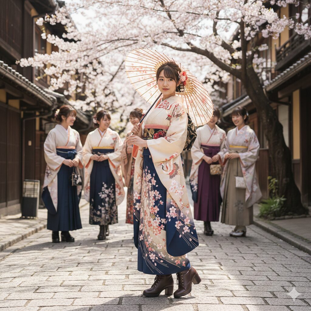 明治時代、学習院などの女子学生が袴を着用し始めた際、西洋文化の象徴としてブーツを取り入れたのが始まりです。この「和洋折衷」のスタイルは、単なる流行ではなく「活動的な女性」の象徴でした。現代でもそのレトロでモダンな雰囲気は、個性を大切にする卒業生に強く支持されています。