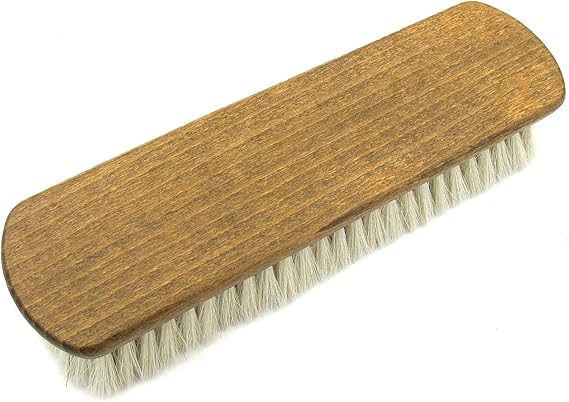山羊毛は、豚毛で磨き上げた後にワックスの層を整えるために使います。初心者のうちは馬毛と豚毛の2本があれば十分ですが、靴が増えてくると、山羊毛の生み出すシルクのような光沢が欲しくなるはずです。