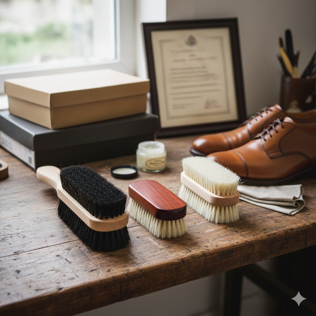靴磨きは、適切な道具を選ぶことから始まります。ここでは、私が実際にブラシを使い分ける中で感じている「リアルな手応え」をベースに、素材ごとの特性を深掘りします。