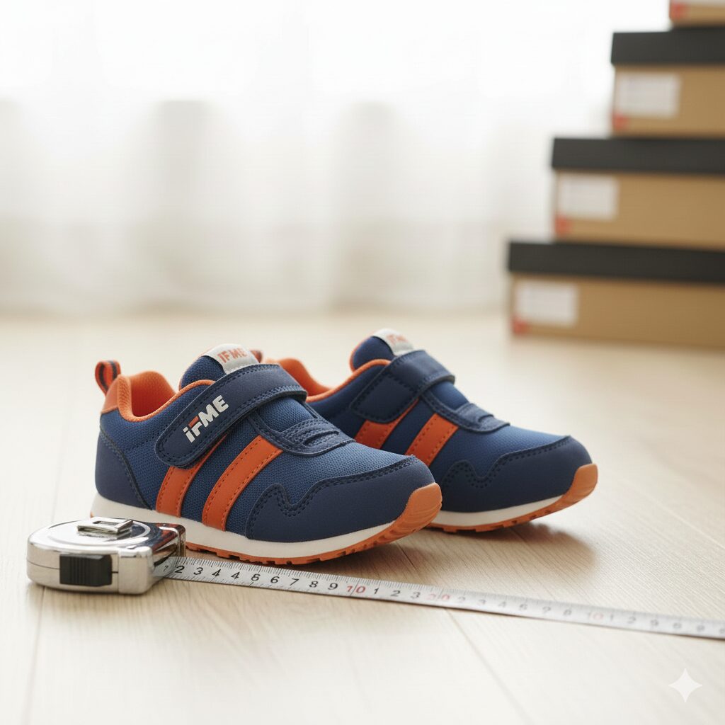 結論から申し上げますと、イフミーのサイズ感は、一般的な子ども靴に比べて「幅広・ゆったりめ」に設計されています。これは、日本人の子どもに多い「幅広・甲高」な足型を考慮し、指先を自由に動かしてアーチ形成を促すための意図的な設計です。