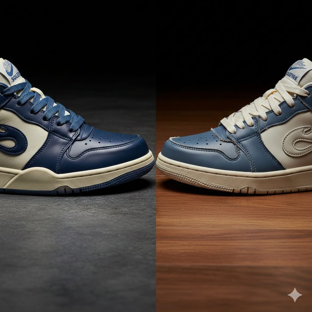 • 偽物との最大の違いは「刺繍の密度」と「特製の靴紐(ツートーンコード)」の質感
