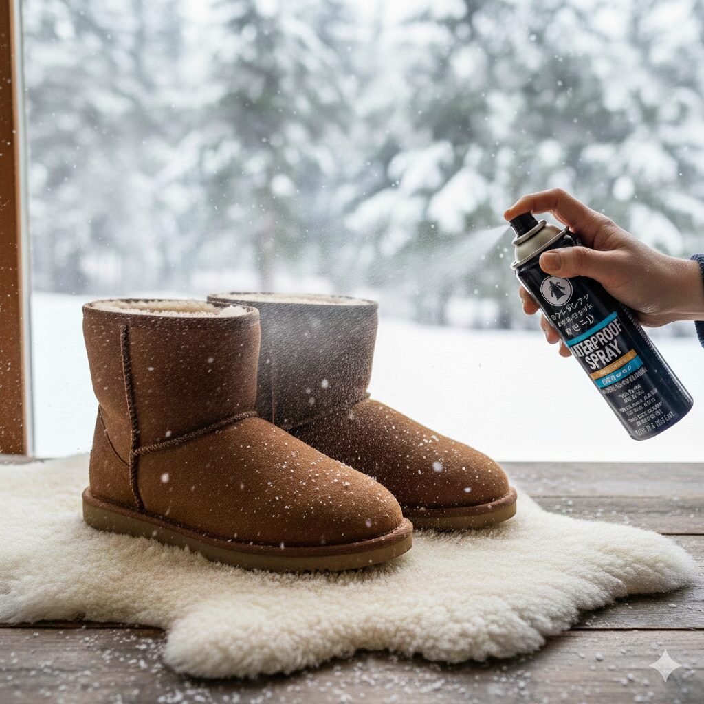 最近では、製造段階で撥水剤を繊維の一本一本に浸透させた「撥水ムートン」も増えていますが、それでも経年変化でその効果は薄れます。長く愛用するためには、後述する防水スプレーによる「セルフガード」が不可欠です。