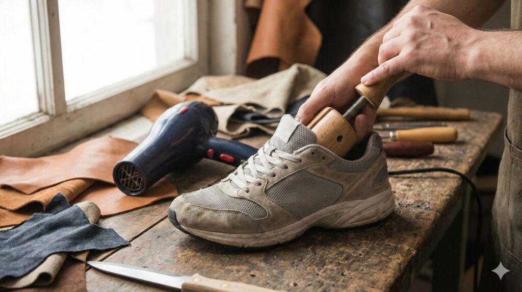 「NIKE」「スニーカー」「横幅」「広げる」という悩みに対して、ドライヤーは強力な武器になります。特に合成皮革のモデルにおいて、熱は素材を一時的に柔らかくし、成形を助けてくれます。ただし、一点に集中して熱を当て続けるのは厳禁です。