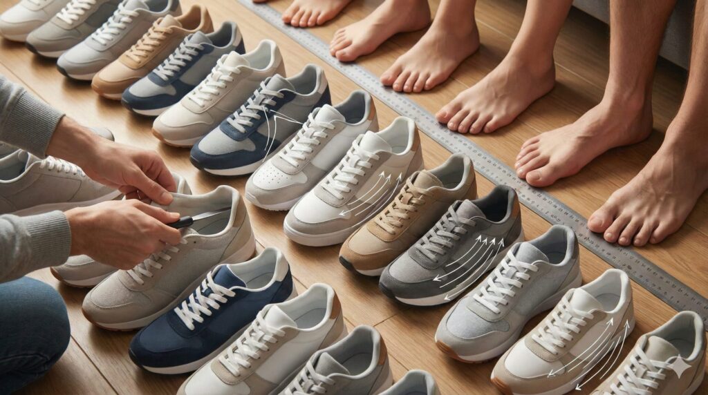 NIKEは一般的にDワイズ相当の細身が多いため、幅広自覚がある方は「0.5cm〜1.0cmアップ」を基本戦略にしましょう。試着時に小指の付け根が極端に盛り上がっていないか、上から見てシルエットが崩れていないかを確認するのが、愛好家としての審美眼です。