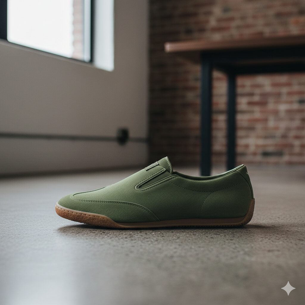 紐がない分、シルエットはさらにミニマル。スピードキャットよりもさらに「素足に近い」感覚で、ワイドデニムの裾からこの極薄のつま先を出すスタイルが、今のストリートの正解の一つになっています。