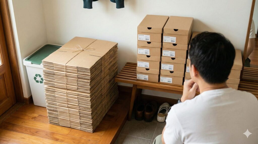 この記事では、そんな失敗を繰り返さないための判断基準から、衛生的な捨て方、さらには箱を捨てた後の劇的な収納術まで、余すところなくお伝えします。読めば、あなたの玄関が「ただの物置」から「最高のコレクションルーム」へと生まれ変わるはずです。