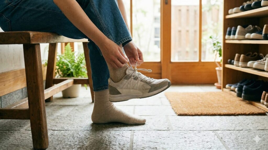 お気に入りのスニーカーを履く際、玄関で紐を結び直す時間にストレスを感じていませんか。結論から申し上げますと、スニーカーを脱ぎ履きしやすい結び方にアップデートすることで、毎日の外出は驚くほどスムーズになり、靴自体の寿命も延ばすことができます。