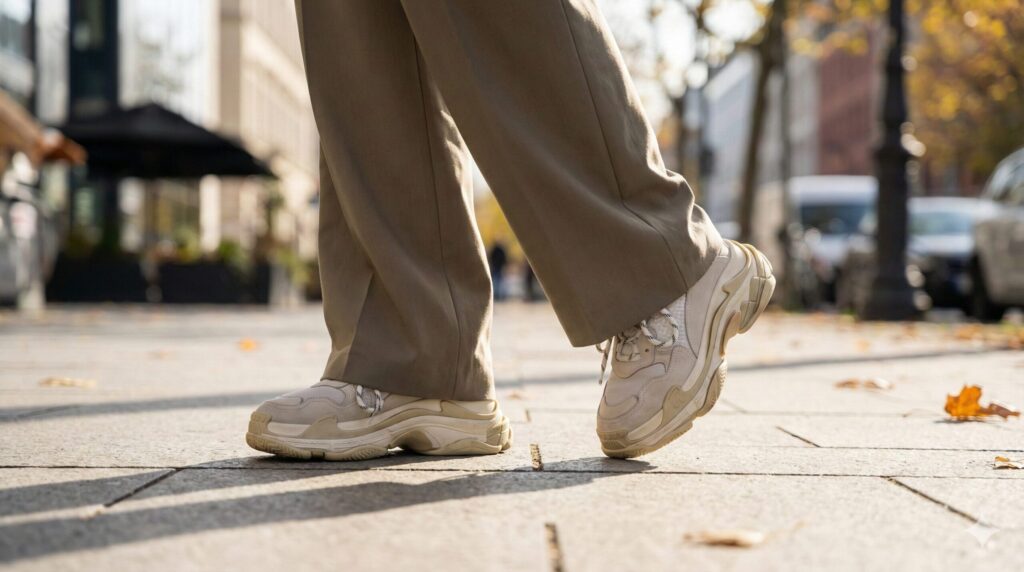 結論からお伝えすると、スニーカーのデカ履きは決してダサいことではありません。むしろ、靴を愛するコレクターやファッショニスタの間では、シルエットを美しく見せるための「必須テクニック」として定着しています。