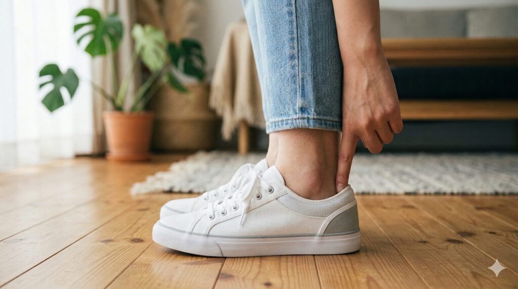 厚生労働省の「e-ヘルスネット」などでも示唆されているように、不適切な靴選びは外反母趾や内反小趾といった足の変形の原因になり得ます。特にスニーカーのつま先に余裕がないと、爪が圧迫されて「巻き爪」や「黒爪」になるリスクが高まります。私自身も、過去にタイトなデザインの海外ブランドをジャストサイズで履き続けた結果、長時間の歩行で足の裏が痺れるような痛みに襲われたことがあります。