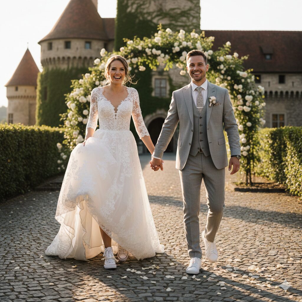 結論から申し上げますと、ウェディングドレスにスニーカーを合わせるスタイルは、自分たちらしさを表現できる最高に魅力的な選択です。最近では「韓国風ウェディングフォト」の影響もあり、あえて足元を崩すことで「こなれ感」を出す演出がトレンドとなっています。
